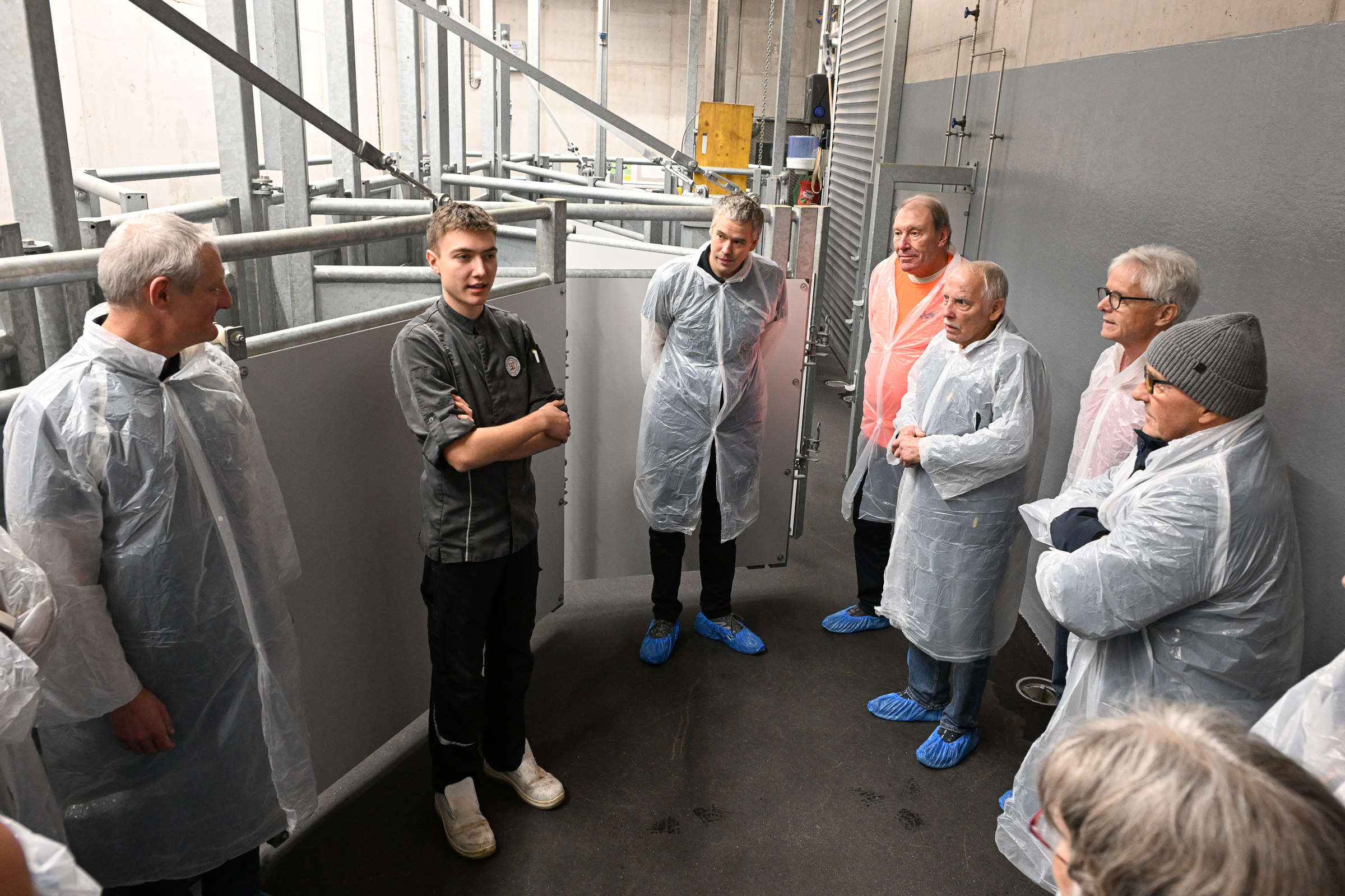 Bevor das OK den Helferstaff über die Routenplanung und die Einzelheiten der kommenden Rundfahrt – die bereits geplant und auf unserer Website veröffentlicht ist – informierte, erhielten wir eine spannende Führung durch alle Räume des Schlachthofs. Dort werden regionale Tiere unter zeitgemässen, kleingewerblichen Bedingungen geschlachtet. In der Fleischwerkstatt wird das Fleisch nach Kundenwünschen zerlegt. Zudem können im «Metzgerhuus – Regio Shop 365» Kleinmengen während 365 Tagen im Self-Checkout-Betrieb gekauft werden. Freitags sowie samstags ist der Shop zwischen 9 und 12 Uhr zusätzlich bedient, um Spezialwünsche zu erfüllen.