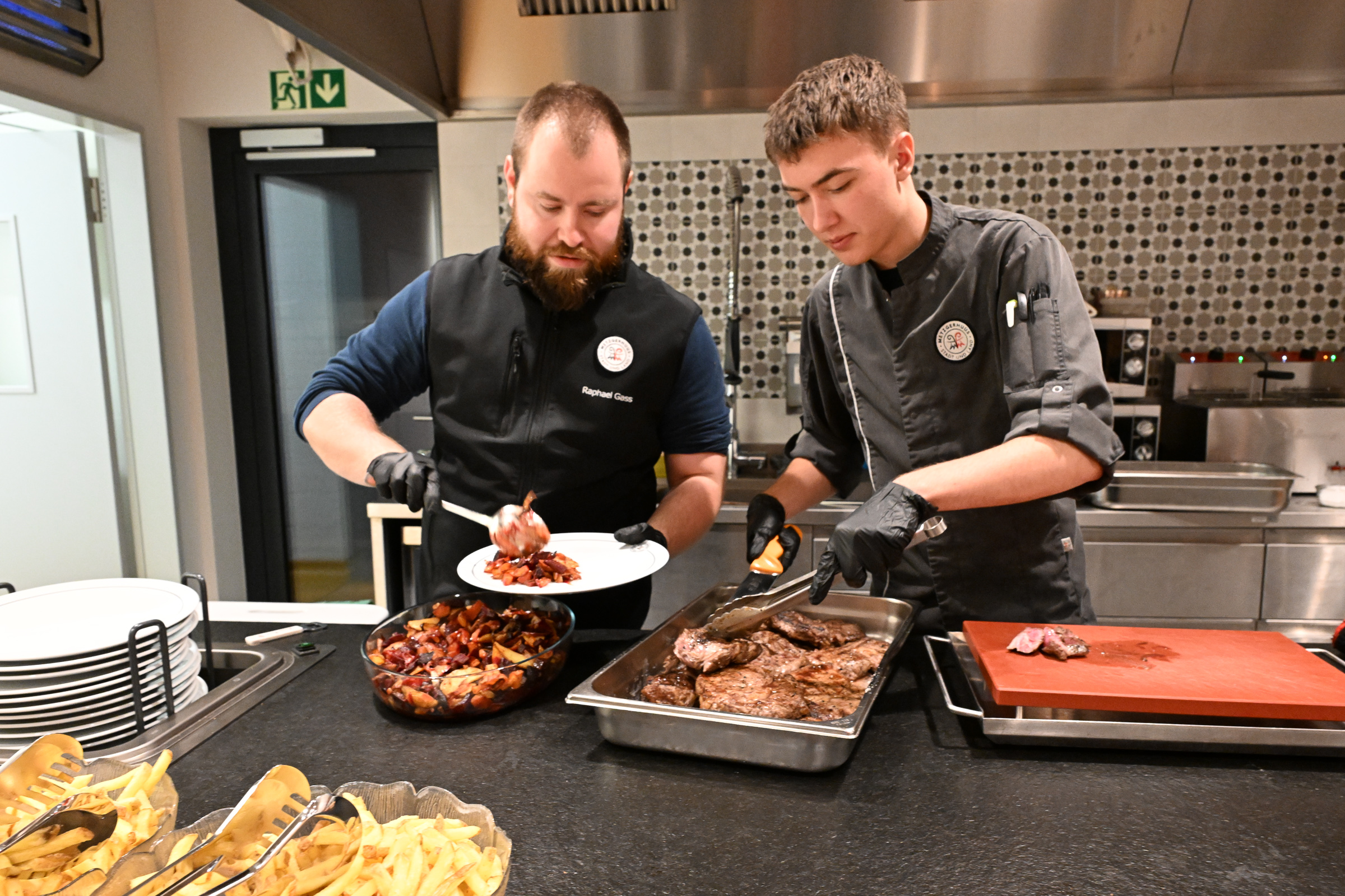 Direkt im Anschluss an die Führung wurden wir kulinarisch verwöhnt. Im Eventraum des Metzgerhuus bekochten uns zwei Mitarbeiter von Jenzer mit sehr feinen Fleischgerichten. Auch die eine vegetarische Person unter uns kam nicht zu kurz und konnte sich selbstverständlich fleischlos verköstigen.